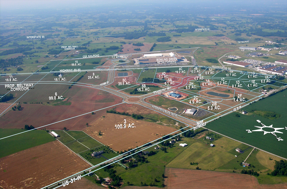 Bowling Green市の北に位置するKentucky Transpark は、US 31WとUS-68 /KY-80へのアクセスが容易です。このハイテクなビジネスパークは、軽工業、重工業に適した敷地開発を進めており、また、商業や小売業向けにも土地を提供しています。 |